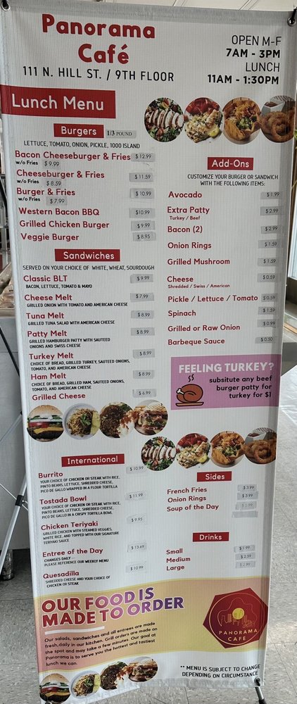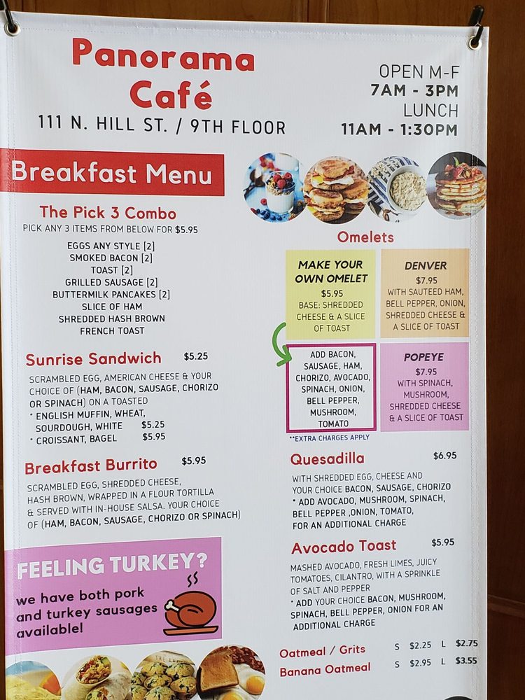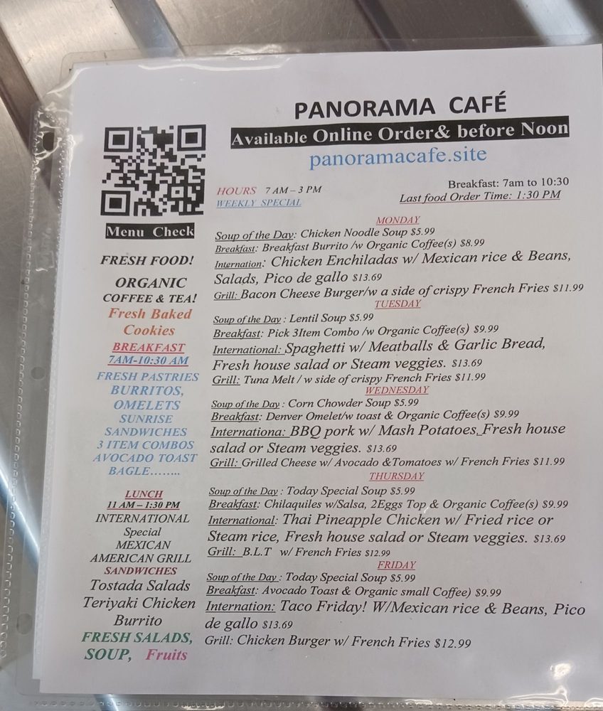 Welcome to Panorama Café, a hidden gem perched on the 9th floor of the Stanley Mosk Courthouse in Los Angeles. Ideal for breakfast and brunch enthusiasts, this café delivers a delightful menu highlighting classic comfort foods. Start your day with the Classic Cheese Omelet or the savory Denver Omelet, both paired with toast for a satisfying beginning. The café also offers tempting options like the Sunrise Sandwich and Breakfast Burrito, featuring fresh ingredients and in-house salsa.