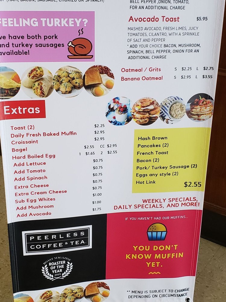 Scrambled egg, American cheese and your choice of (ham, bacon, sausage, or spinach) on a toasted English muffin.